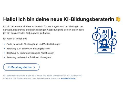 Ob Studium, Berufsabschluss oder spezialisierte Weiterbildung – die neue KI-Beraterin analysiert den individuellen Hintergrund und die Ziele der Nutzer, um massgeschneiderte Empfehlungen auszusprechen. Das Tool fungiert als persönlicher Wegweiser und ergänzt die bewährte klassische Filtersuche der Plattform.